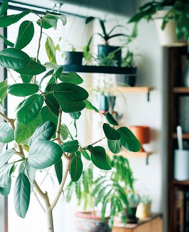 癒やしにもなり、エネルギーチャージもしてくれる愛おしいグリーン。「窓辺には本物、窓のない場所にはフェイクを置くなど、陽あたりによって配置してます」。