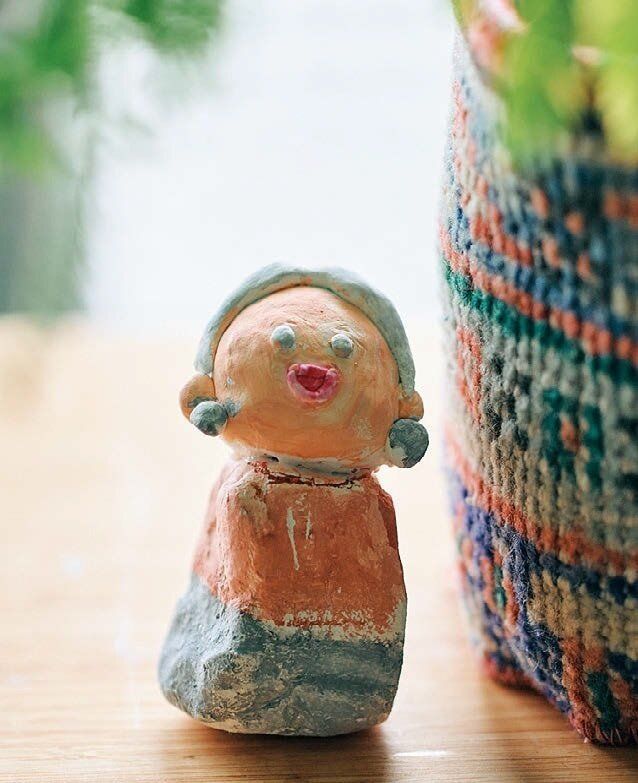 「こけし好きのママに、ママのこけしを」と三女が誕生日にくれた、紙粘土の手作りこけし。「リビングの特等席に置いてよく眺めています」。