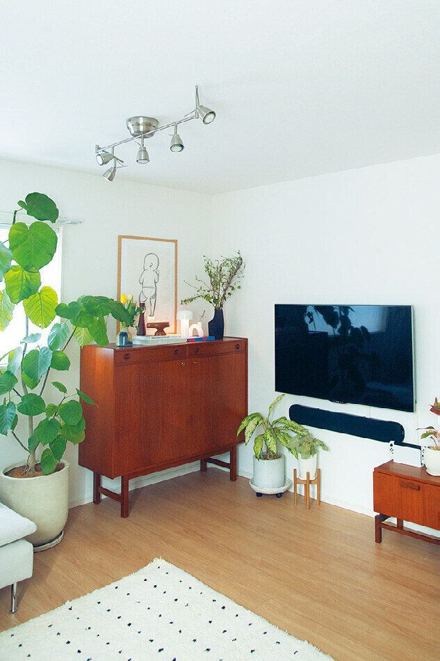 「床に置かなければ、掃除もラクだし部屋が広く見えます。TVの壁づけにはクラウドファンディングで購入した『WALL TV UNIT』を使用。少ないピンだけで設置できるので賃貸でも◎」。