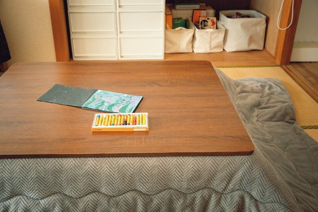こたつを置いたら長男が座って静かに工作やお絵描きをするように