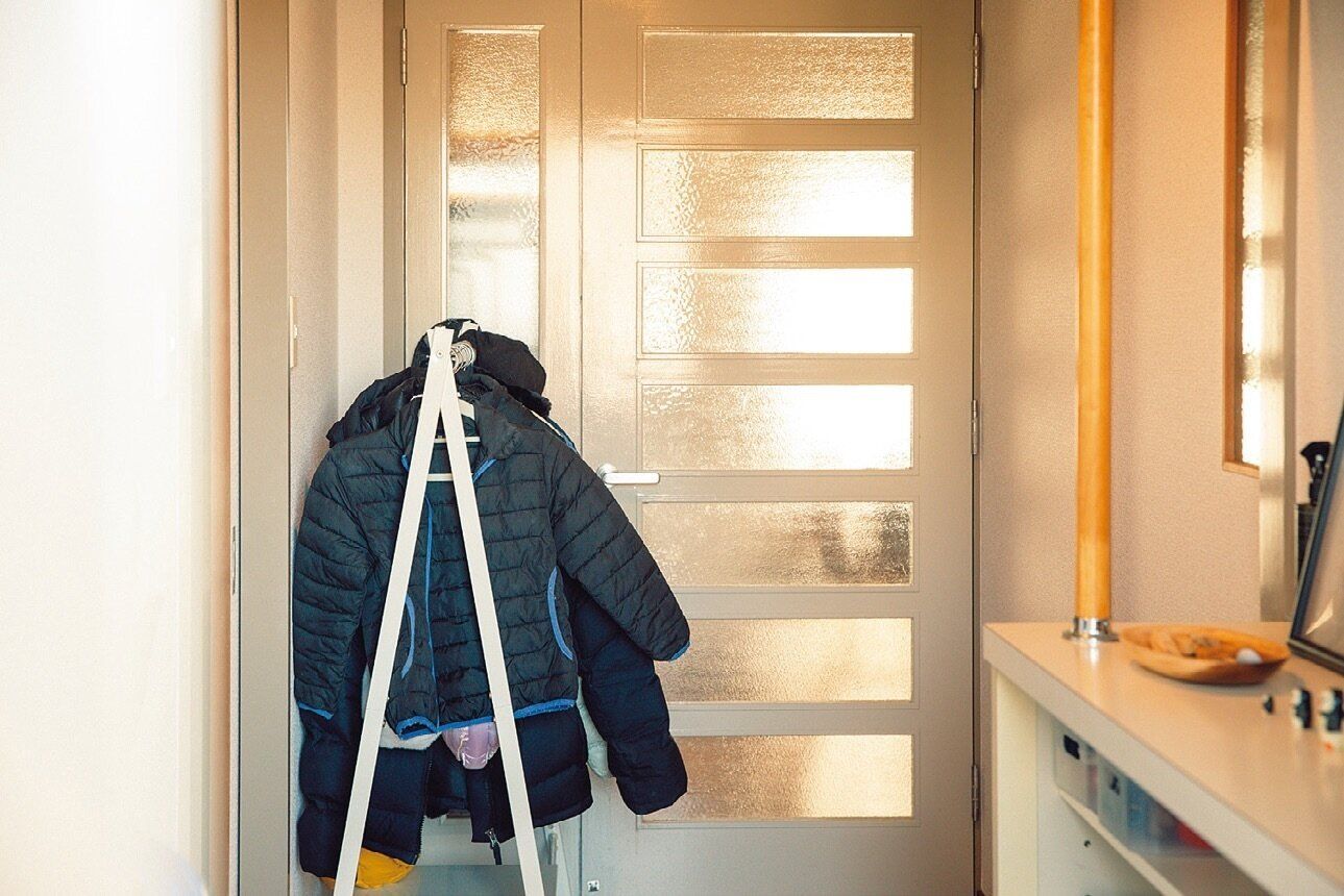 脱ぎ捨てられるのが嫌だから、狭い玄関でもハンガーを設置