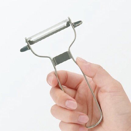 軽くてシンプルで切れ味もサイコー!芽取りが両側についた左右対称の形で利き手を問わず使えます(約幅7.5×長さ12cm、食洗機使用可)