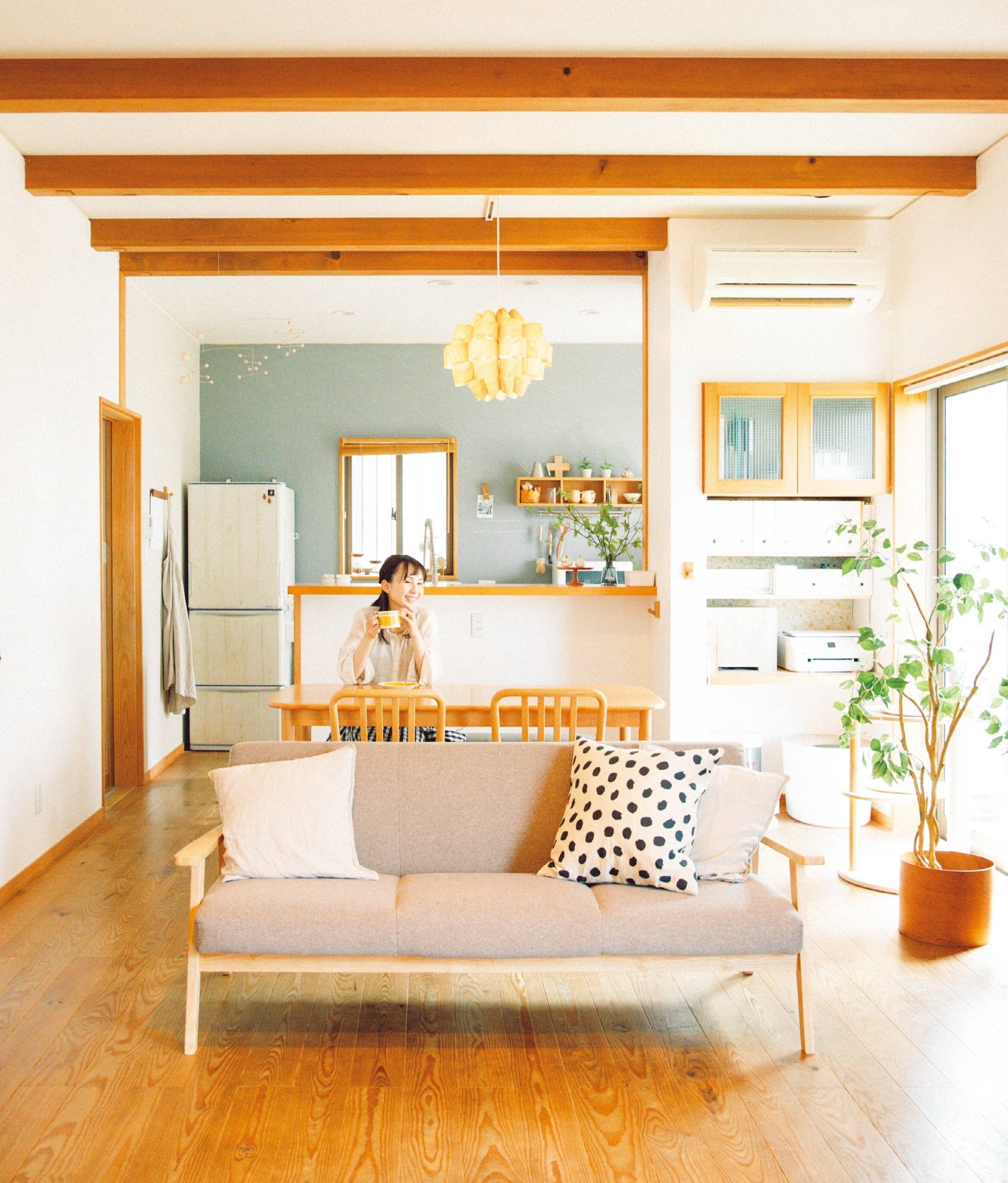 家を買った当初は、ほっこりしたナチュラル雑貨やファブリックを家中に飾っていたK.Kさん。「5年ほどたつと、物が多すぎて落ち着かないし、掃除も大変になってきたので、少しずつ物を減らし始めました」。その頃、北欧式整理収納プランナーという資格があることを知り、通信教育で取得。「北欧式は、使いやすいだけの収納ではなく、見た目にも重きを置いている点が魅力。学んだメソッドを実践し、家具や色の統一、余白のある収納など、見た目も意識するようにしたら、センスがない私でも、憧れの北欧インテリアに近づけました」。