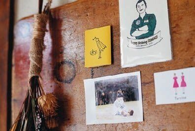 東京の一軒家へ。いつの間にか猫の数も増えてます。あちこちに素敵な物が飾ってあるが、実は無料のショップカードだったりするのがyomegさん流。