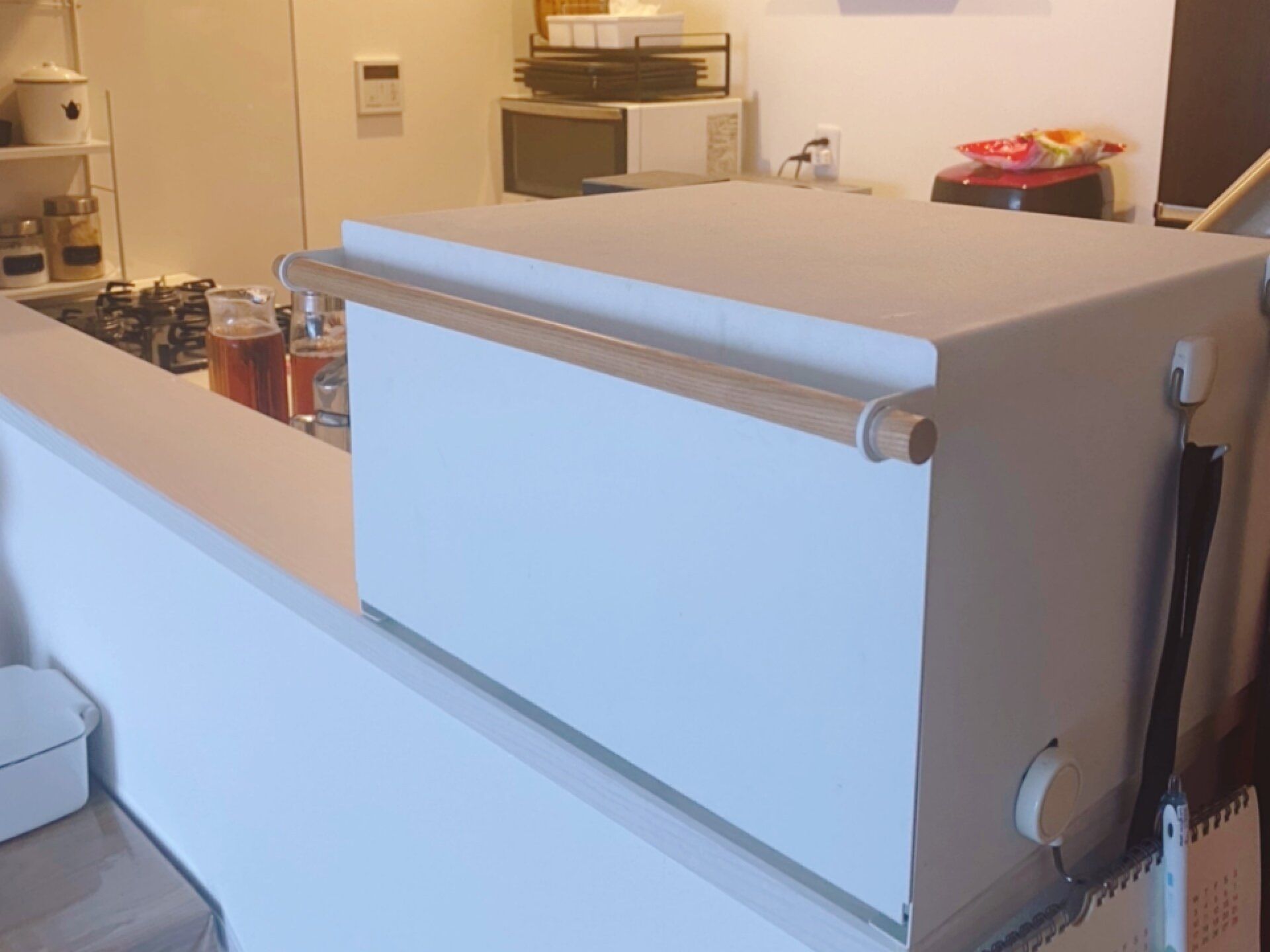 その名の通り、パンをストックしておくためのケースですが、かなりの大容量!そのため我が家では、コーヒーや紅茶にお菓子など、キッチンをごちゃつかせがちなものを目隠し収納するために使っています。キッチンを広くスッキリとした印象に仕上げてくれて、おすすめですよ。