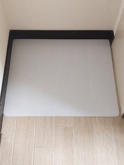 置いてしまうと掃除がしにくくなる冷蔵庫下。その部分の汚れや傷を防止するために専用のシートを敷きました。