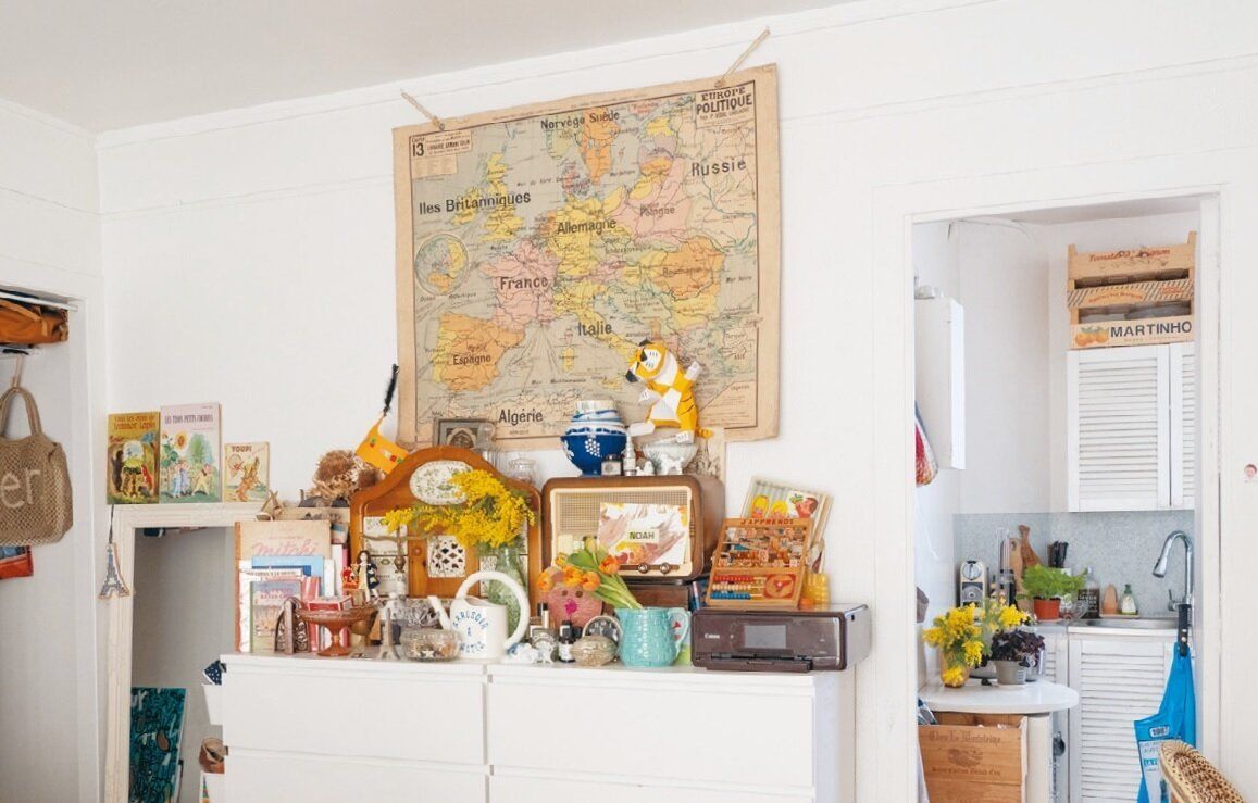 家具はシンプルでも、好きな物を並べて自分らしさを演出するのがフレンチスタイル。「好き」に囲まれる心地よさが何よりも大切。