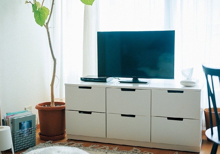 「部屋の隅は視線が集まりやすく、そこに物が集まっていると閉塞感が出やすいんです」。だから家具は少し間を空けて配置。空いた場所に植物を置くのも◎。