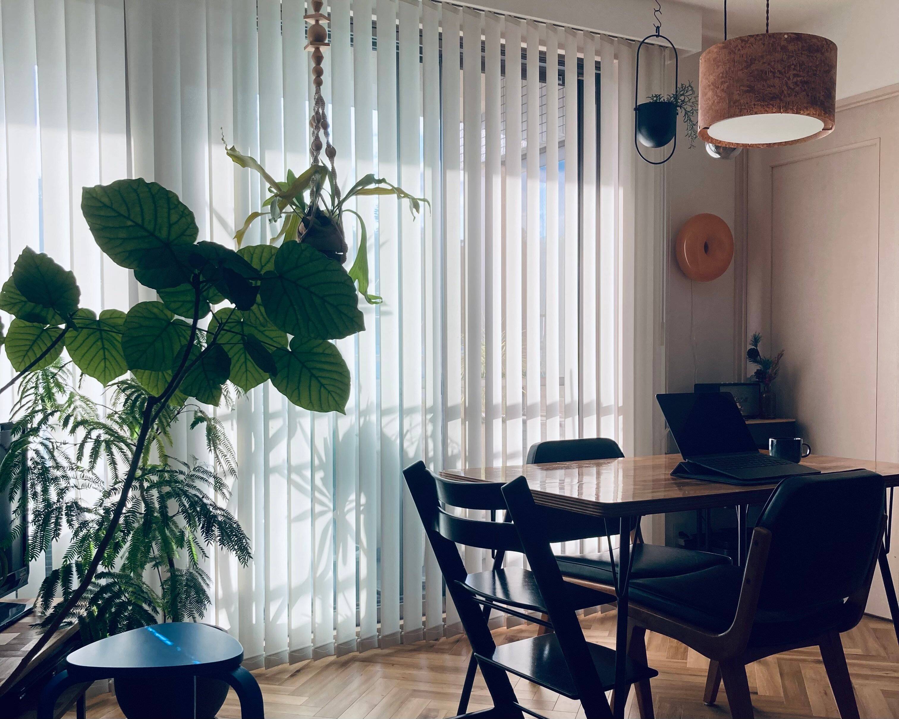 照明だけでなく、植物を吊るすことで場所をとらずに飾ることも可能。