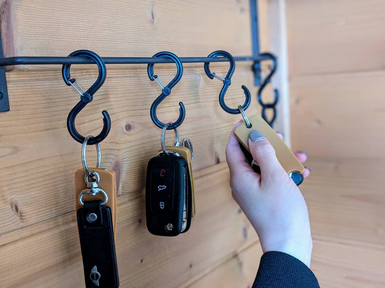 車や家の鍵を、玄関のフックに「かける収納」にしているご家庭も多いのではないでしょうか?確かに、パッとワンアクションで片付け終わる便利な収納法ですが、いわゆる一般的な「S字フック」であれば、鍵と一緒にフックまで外れてしまうこともありますよね。