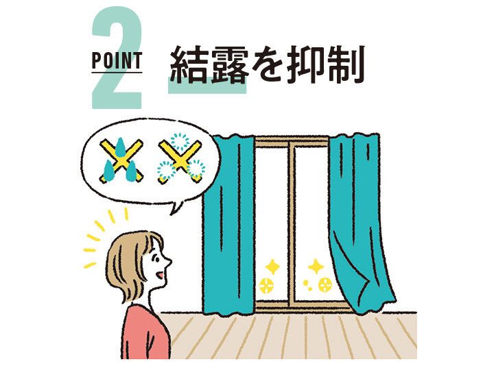 内窓があると、冬でも窓が冷えにくくなるので、結露が起こりにくくなります。カビなどの発生も抑えられて衛生的にもメリット大。