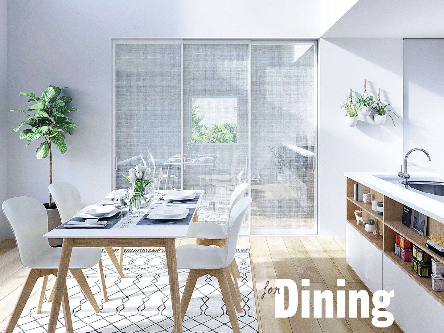 ダイニングとリビングを仕切れば、ほどよく視線を遮りながら、空間を広く見せる効果があります
