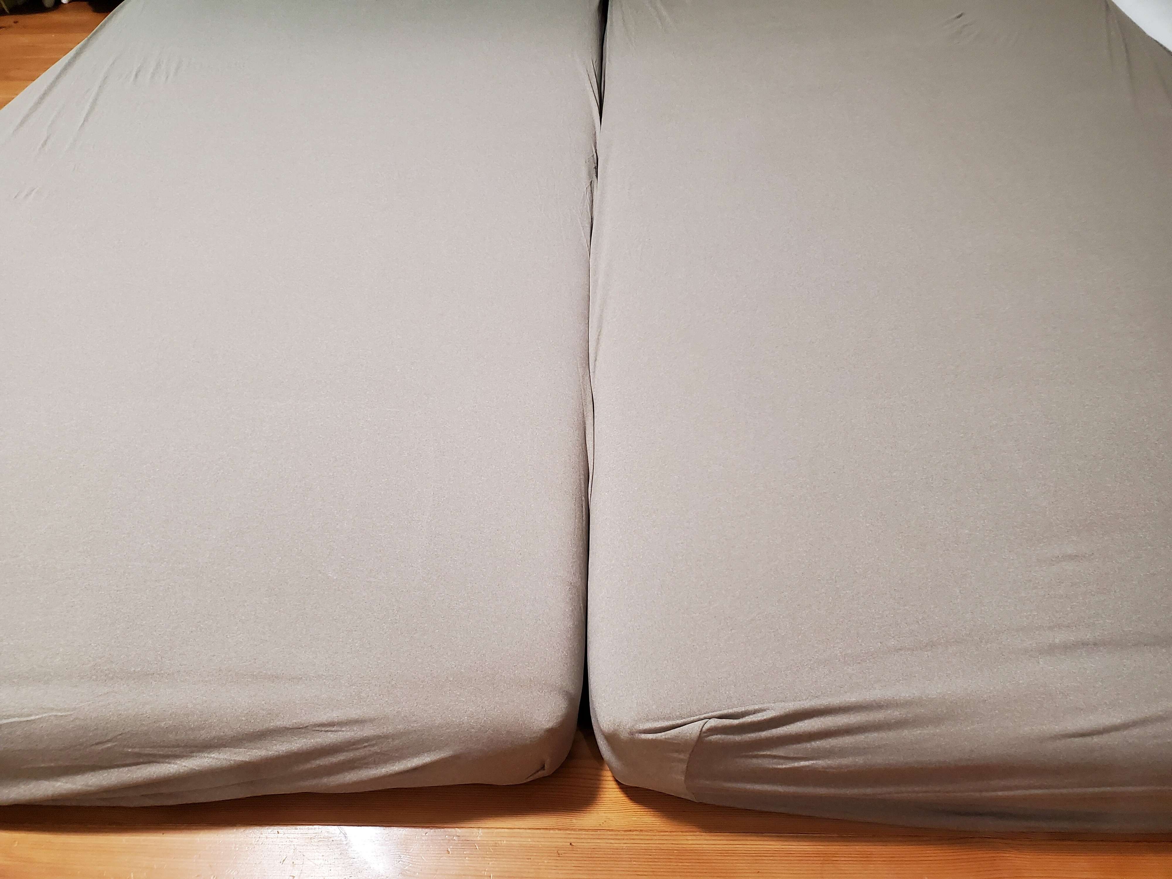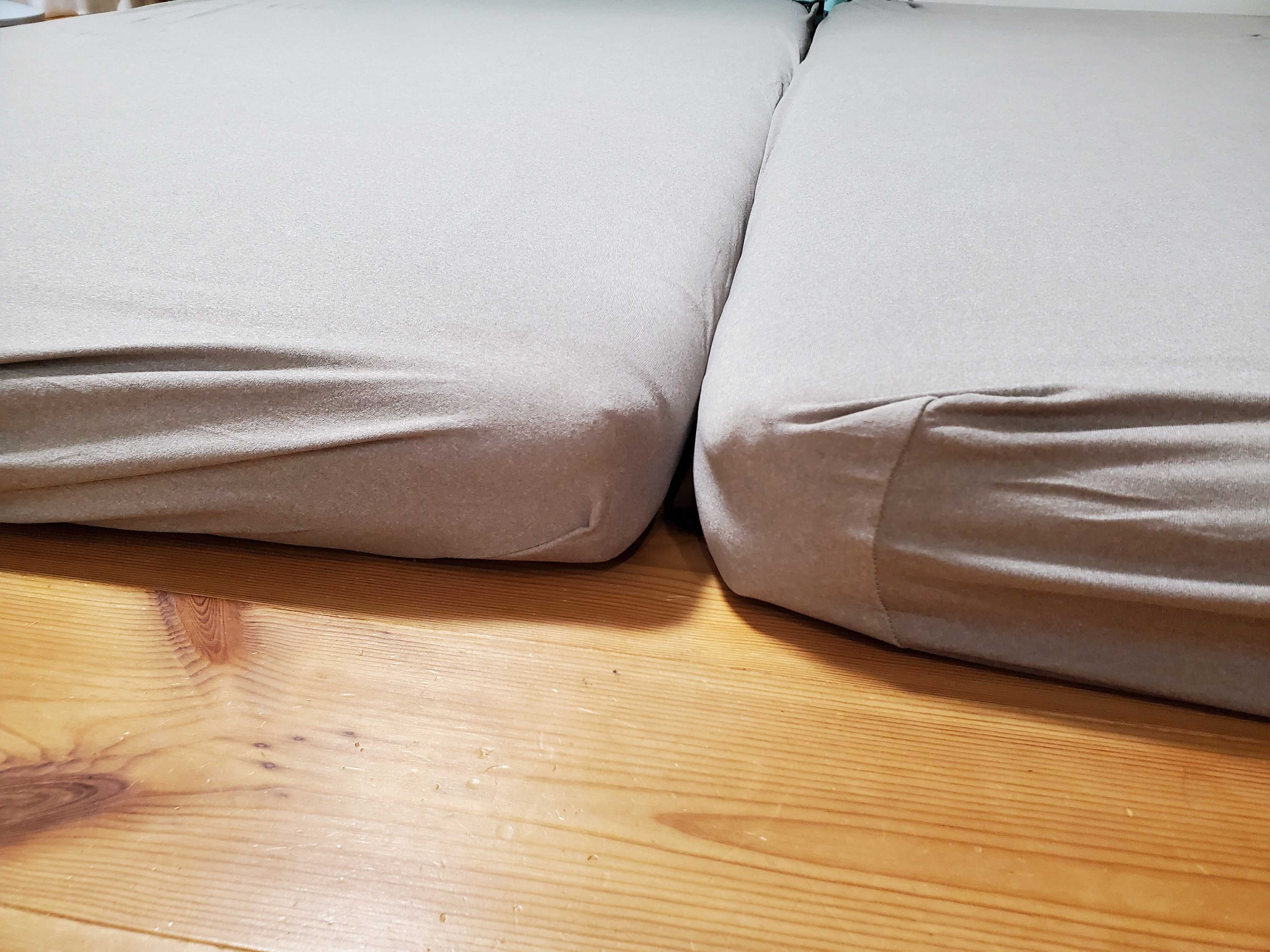 今回私は、四つ角を引っ掛けて上半分がすっぽり包まれる、のびるシーツを選んでみました。