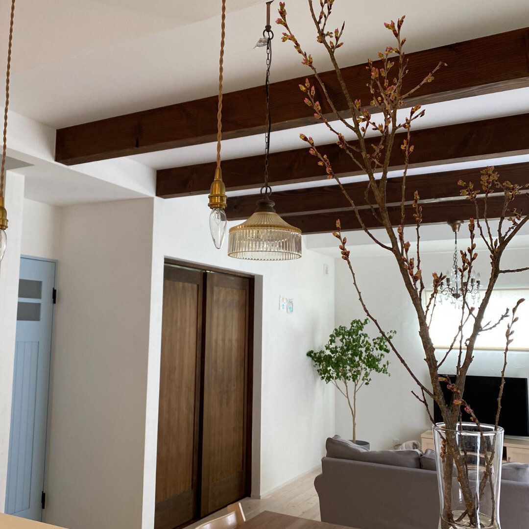 家の中で季節を楽しめるのも花のある暮らしのメリットですね。桃や桜の枝もの、ドウダンツツジなど、その季節毎の花を家の中に飾るだけで外に行かなくてもおうちの中で季節を楽しむことができます。我が家は、枝ものをキッチンカウンターに飾るのが定番になっています。