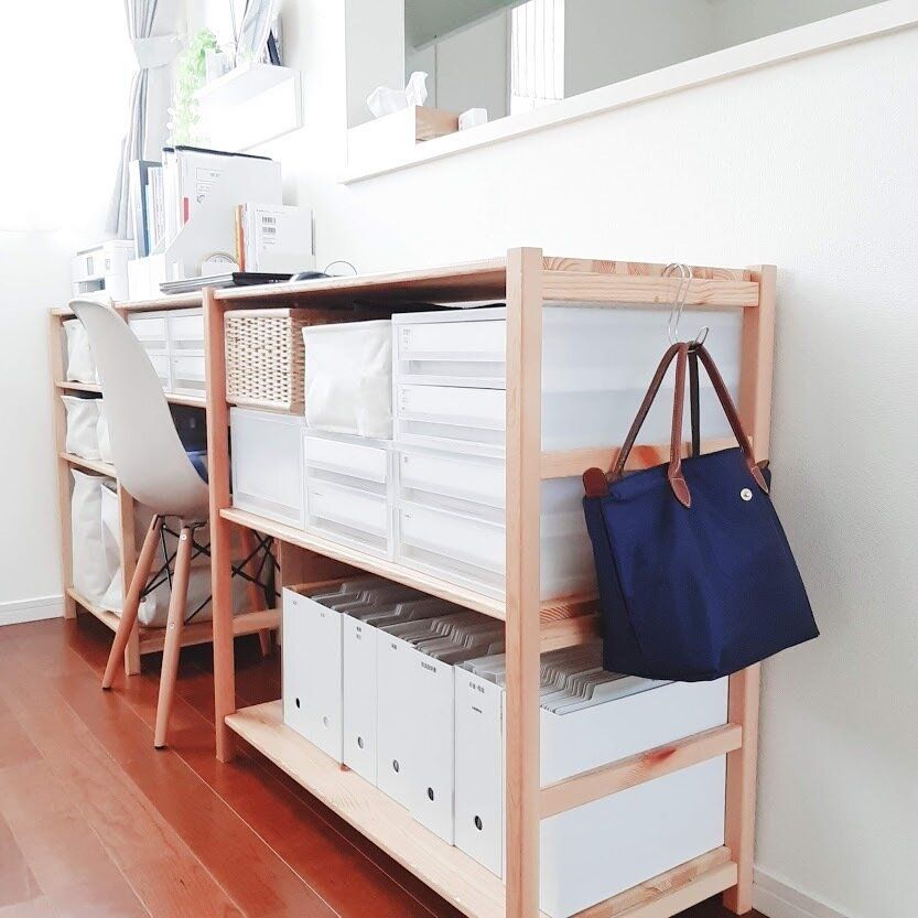 バッグもリビングに持ってくることが多いですよね。フックを設置すると床置きが防止できます。