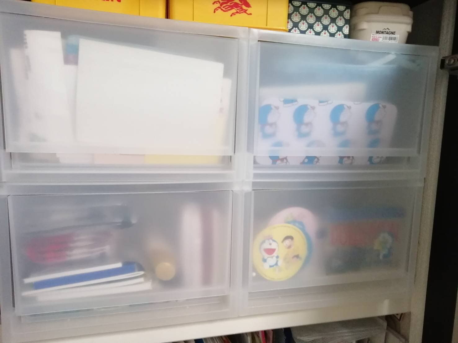 こちら我が家の収納スペースにもピッタリ入るし引き出しも深く大きいので沢山物が入って便利です。ほどよい透明感なので物が入っていても生活感がなく、さすが無印良品ですね。
