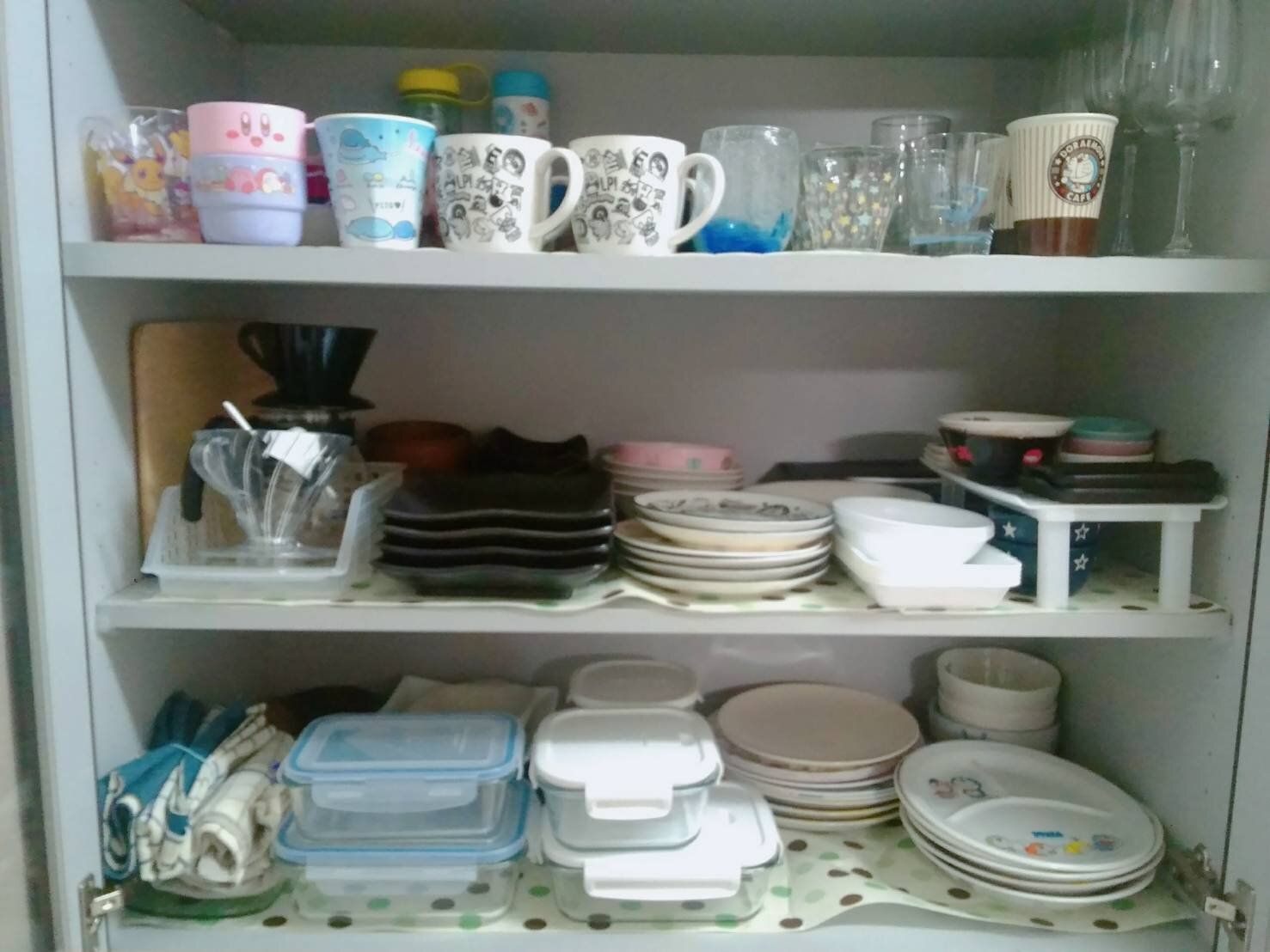 まずは食器棚から。使わない食器は思い切って処分して写真のようにスッキリしました。
