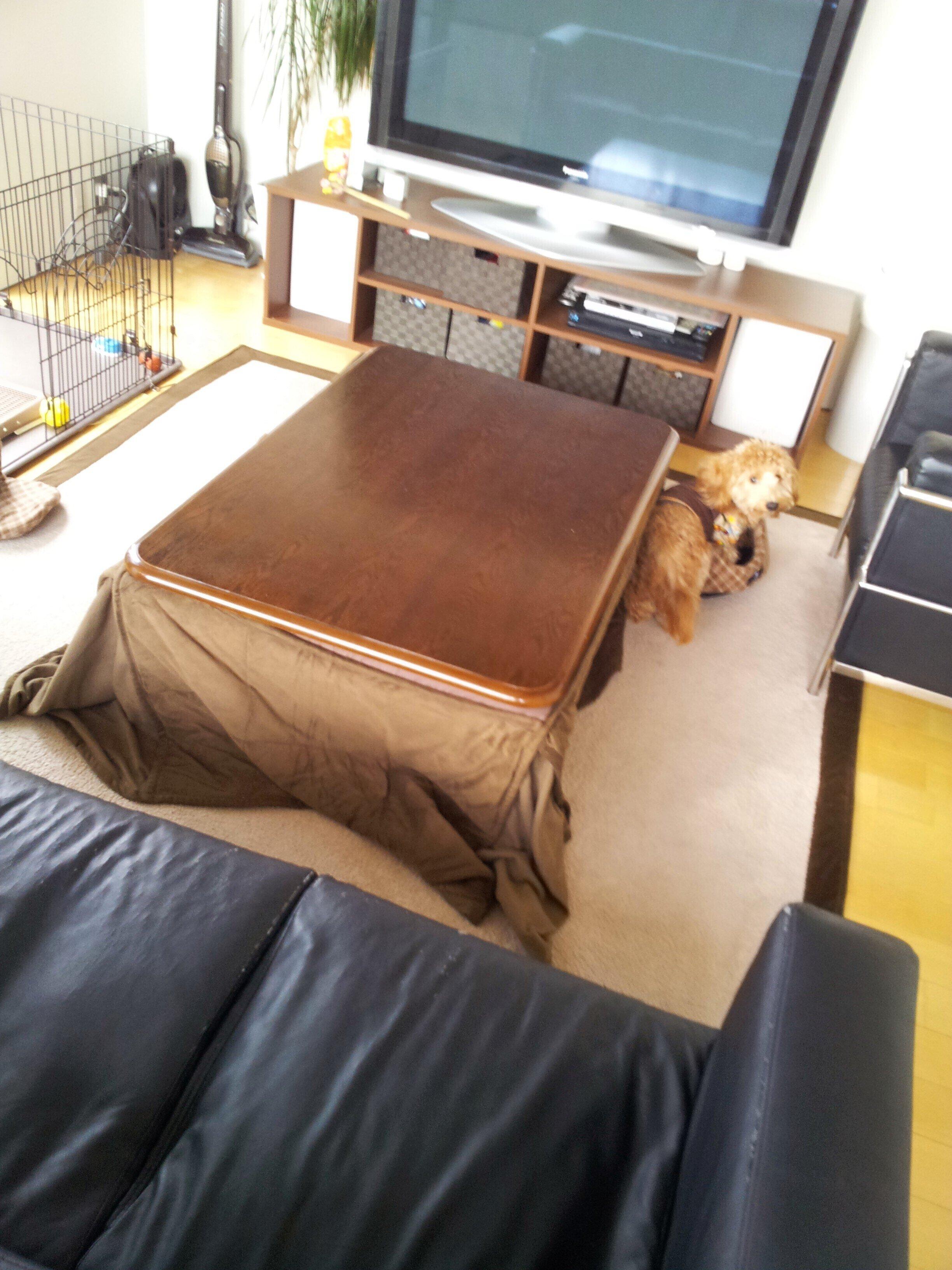 また、リビングは10畳しかないのに家具だらけ…。ゴロゴロするのが大好きなわが家のくつろぎ場所は、このときはソファーの上かこたつに潜るというスタイルでした。