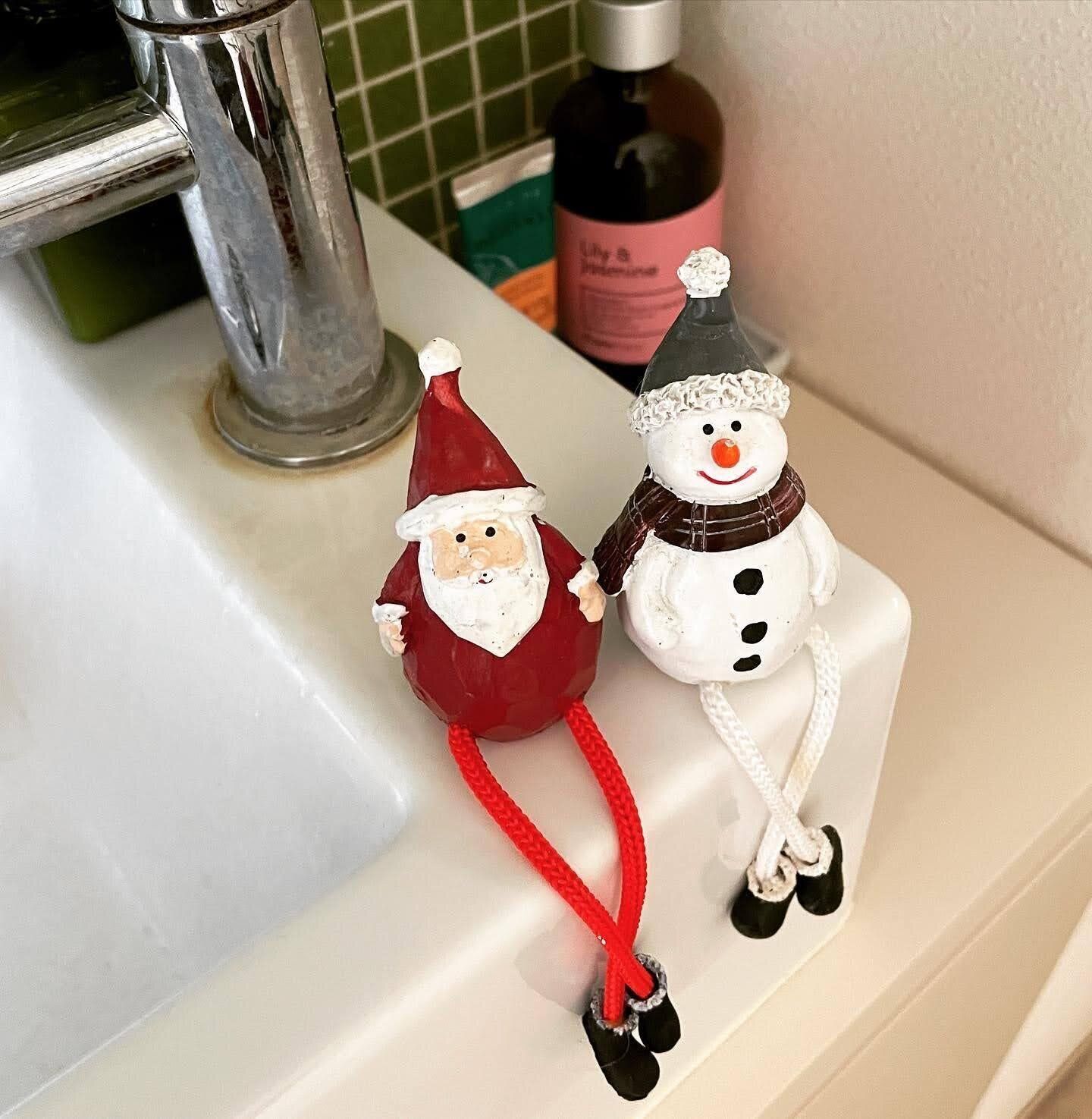 サンタと雪だるまのペアで並べて飾る。