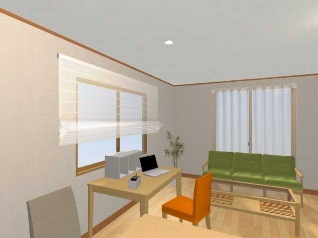 同じ部屋に、それぞれの「奥行き」の机を置いたパース図を作ってみましたので、お部屋のイメージの違いも参考にしてみてくださいね!