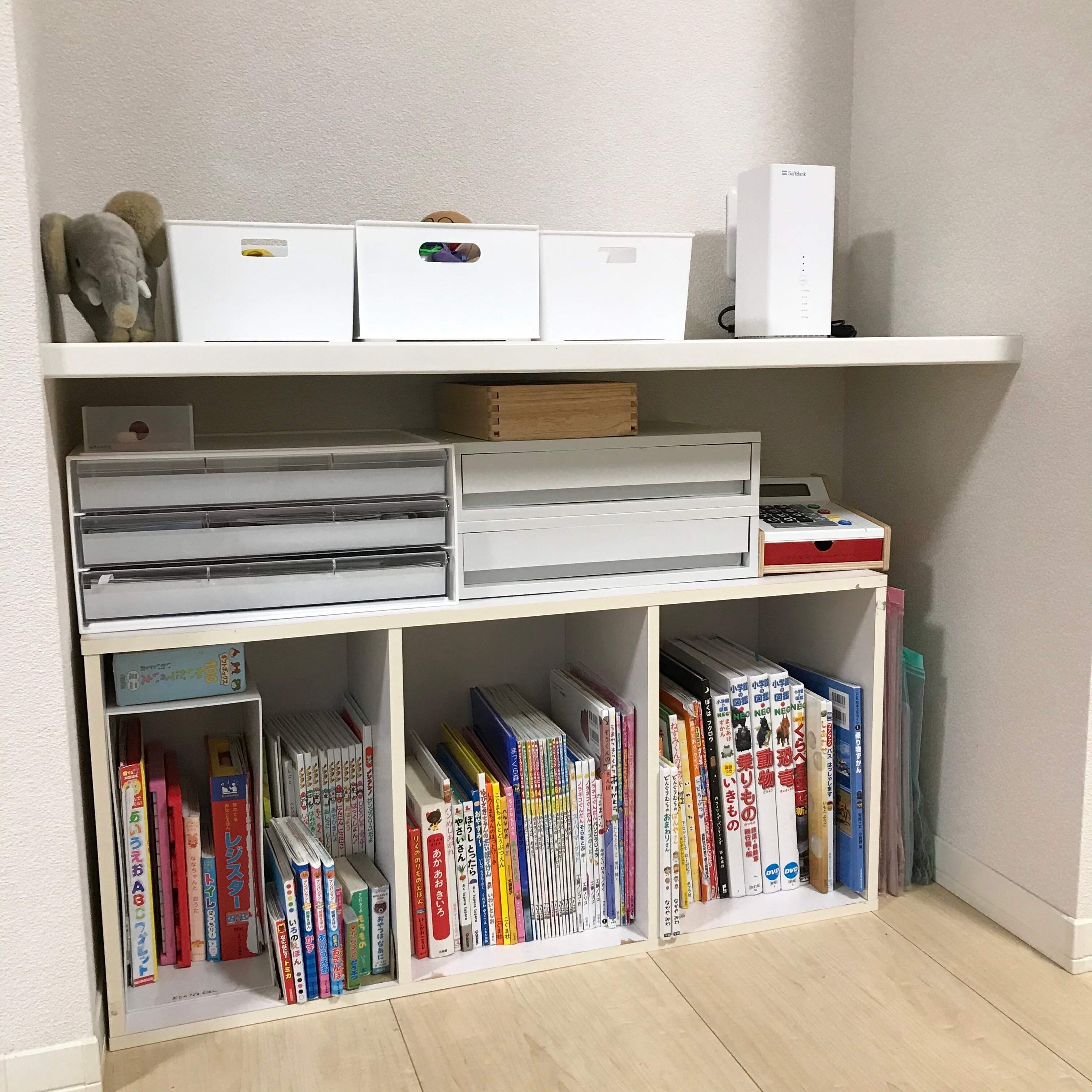 ▼片づけ後なので整っていますが、引き出しが飛び出ていたり、本が溢れたりしていても「ママからパッと見えない」だけで心がうんと軽くなります