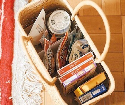 - 深いカゴも、中を仕切れば食材を立てて収納できる!
