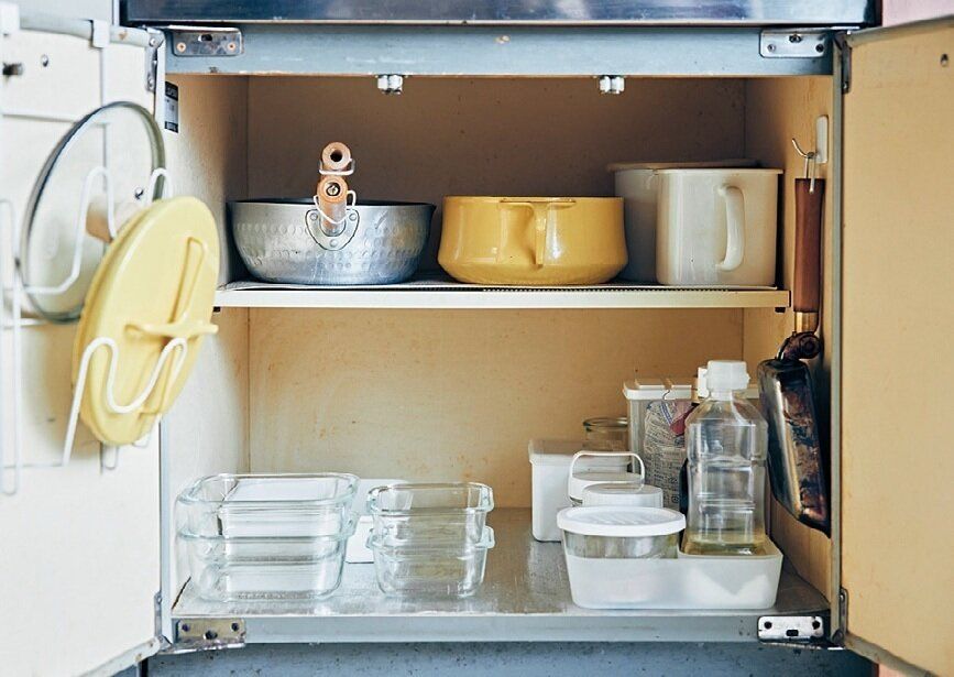 「壁につるす収納」にすれば、狭いキッチンが広く使える