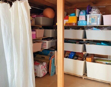 ●桐のすのこで棚を作りおもちゃをすっきり収納