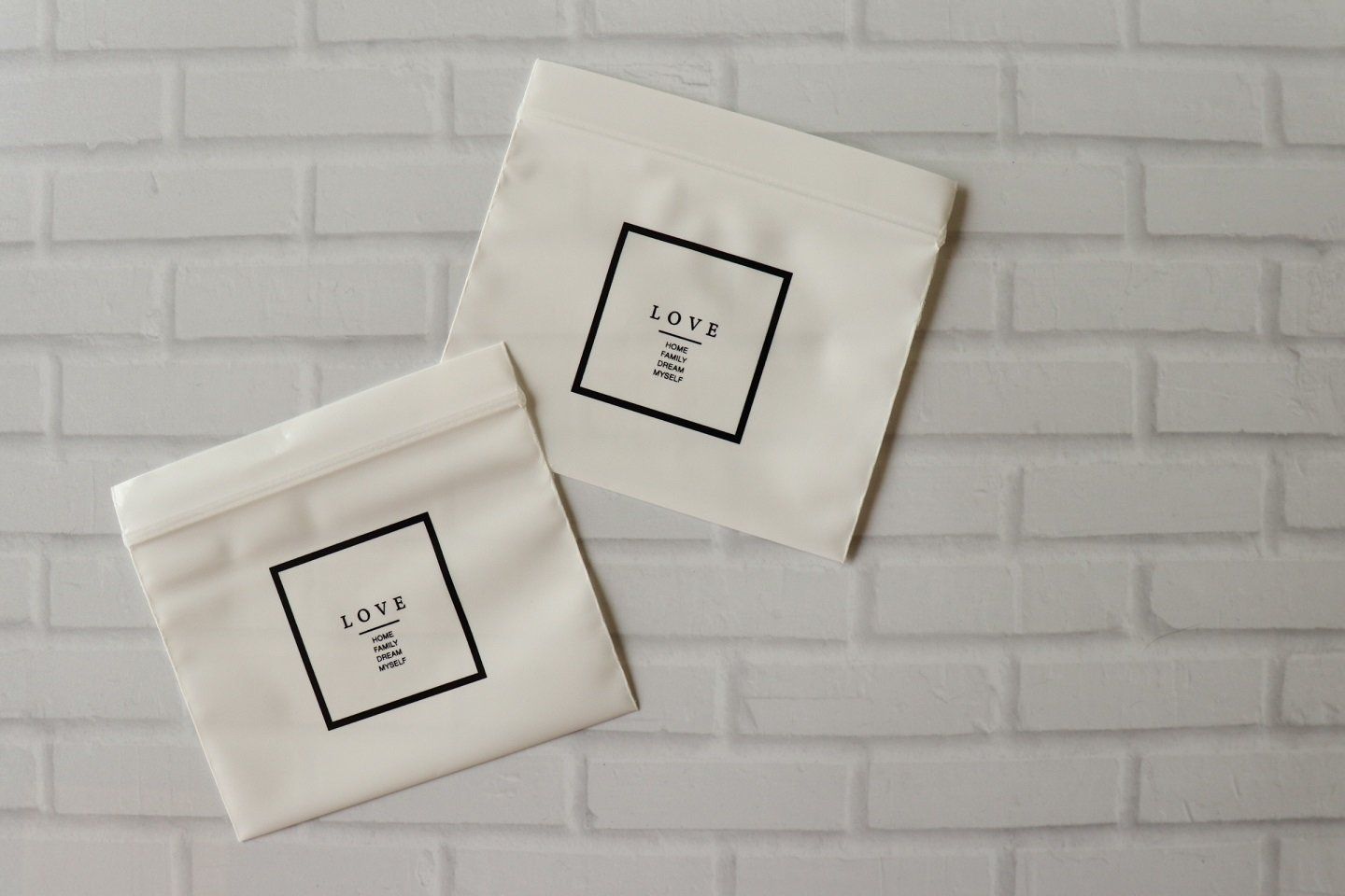 100均ではコーナーができるほど今や充実のチャックつき収納。キャンドゥの「LOVE HOME」シリーズは、色もモノトーンですっきりと見せてくれます。ごちゃごちゃしがちなクリップなどをまとめておくのにGOOD。