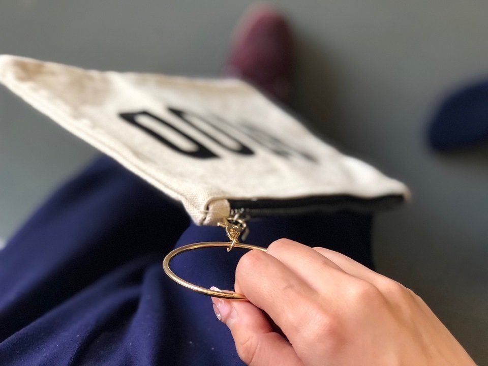 小さなポーチやバッグのファスナーが小さいときなど、キーホルダーをつけるだけでスライドしやすくなります。丸いところがつかみやすいので、持ち手にすると使いやすいですよね。
