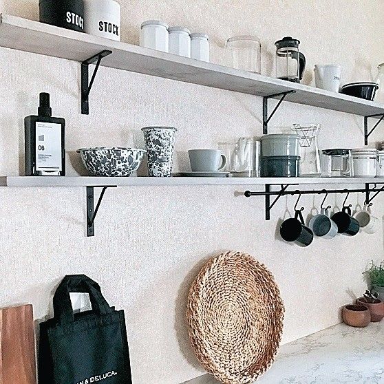 プチプラ×白黒でキッチンの棚の生活感オフ