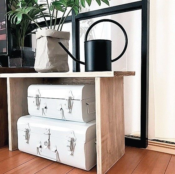 グリーンコーナーは鉢カバーと白いトランクで明るく