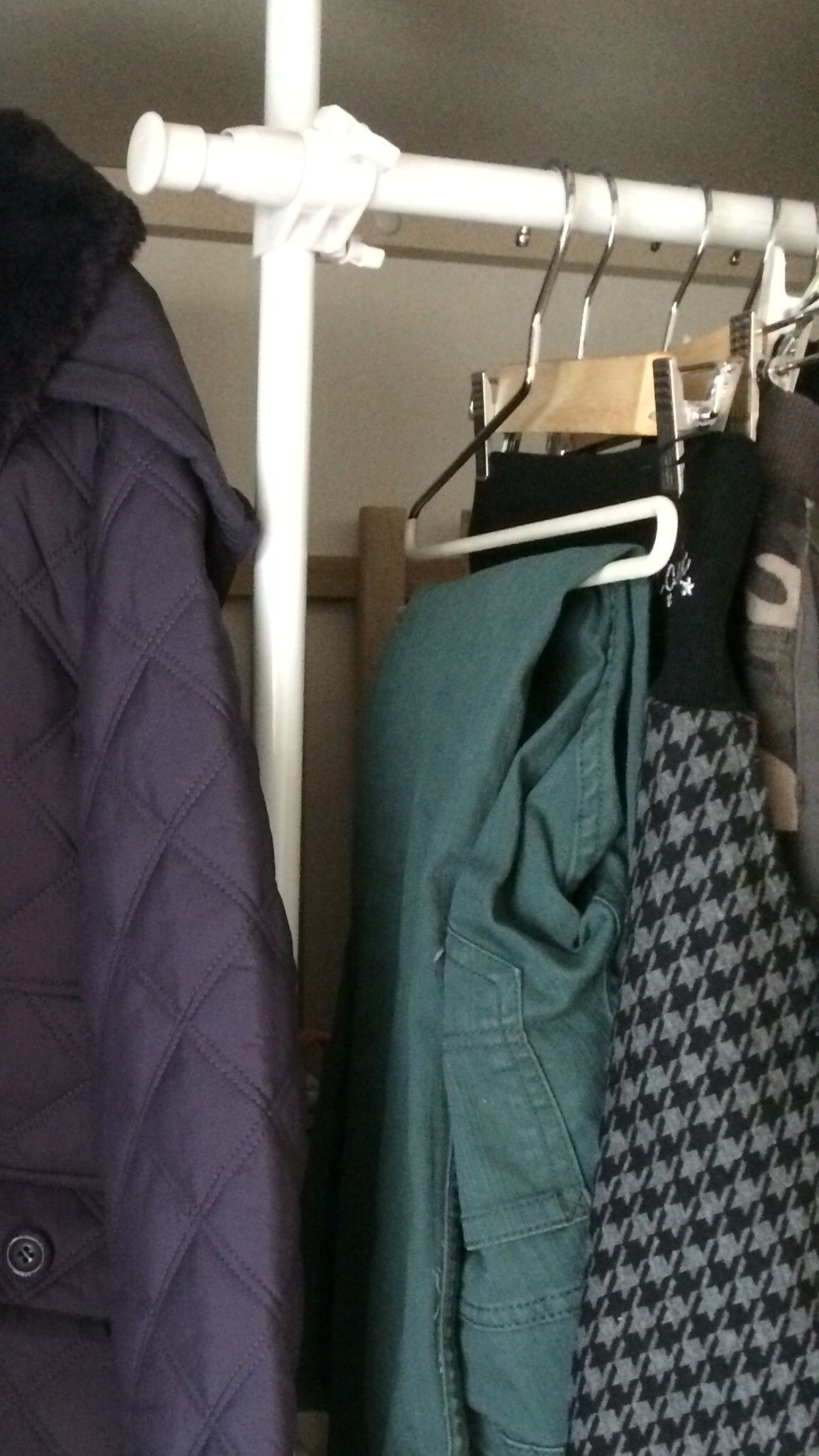 ハンガーの数も自分が持ちたいアイテム数に合わせて購入することで、服を持つ枚数が決まります。季節ごとに服のアイテムが変わるので冬のほうが多めですが、夏場は使わないハンガーをクローゼットの上部棚などで保管しましょう。