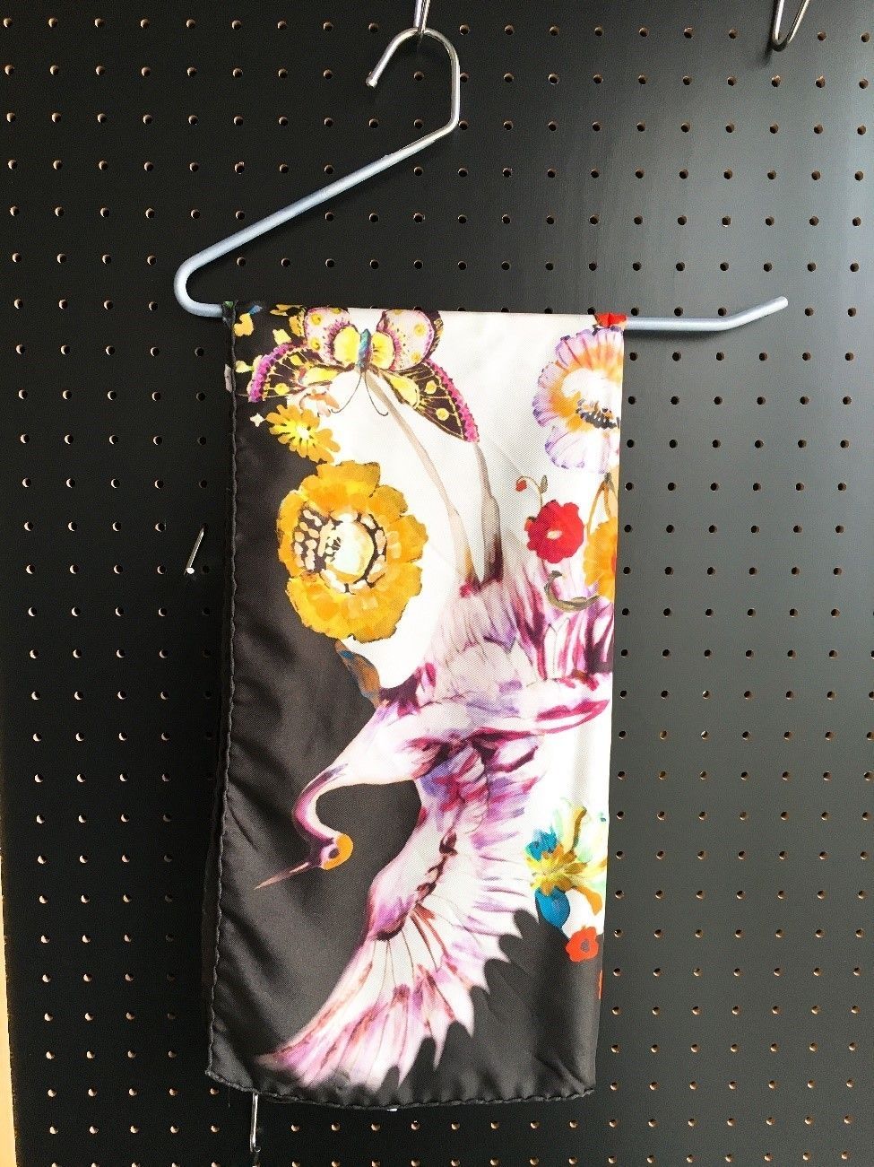 こちらは本来パンツをかけるためのアイテムですが、ストール・スカーフにも。するっと落ちやすい素材の多いスカーフ類も滑りにくいので安心です。