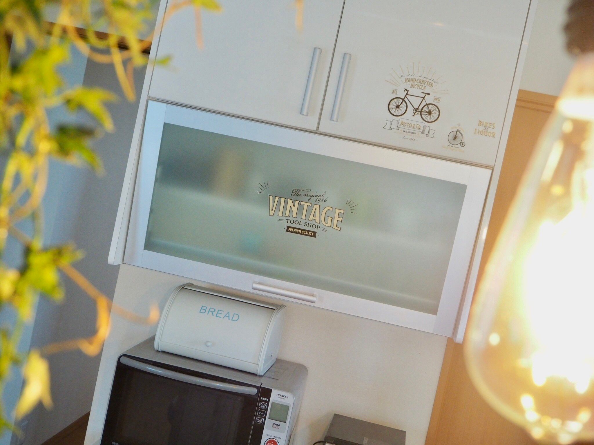普段カップなどをしまっている場所にステッカーを貼っただけでガラリとイメージチェンジ。ステッカーの1枚が大きいので1枚ポンと貼るだけでいつもとは違った印象に。