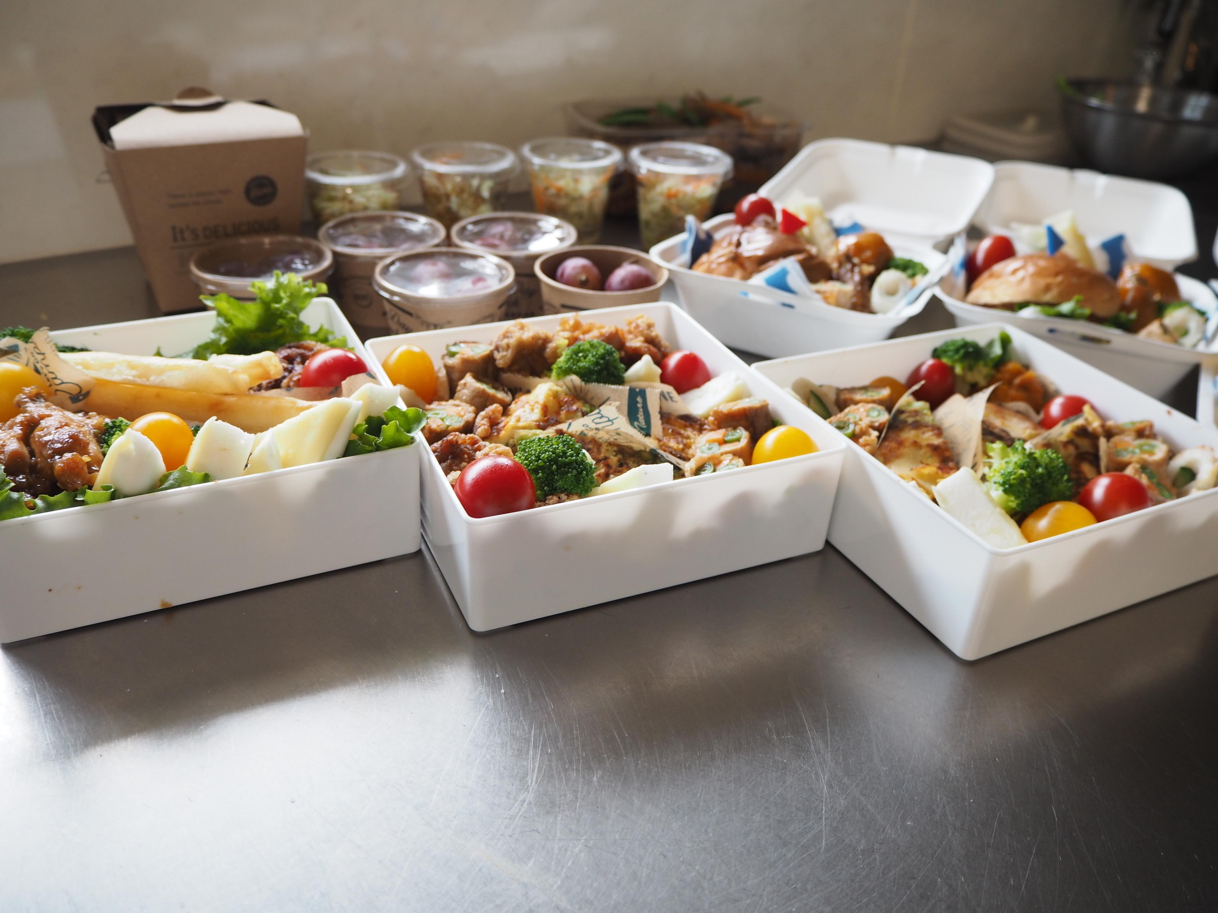 形状は2つ。今回は応援に駆けつけてくれた女子中学生の娘&お友達の為に1人ずつのランチボックスにしてみました。ハンバーガーや唐揚げが好評!