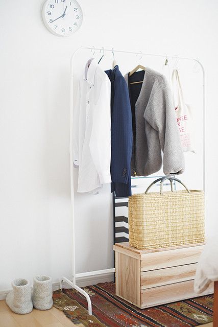 コートやバッグなど、外出アイテムをいちいちクローゼットにしまうのは、面倒になり物が散乱する原因に。部屋の一角に“外出アイテムコーナー”を作れば、手間はかからず部屋も乱れません