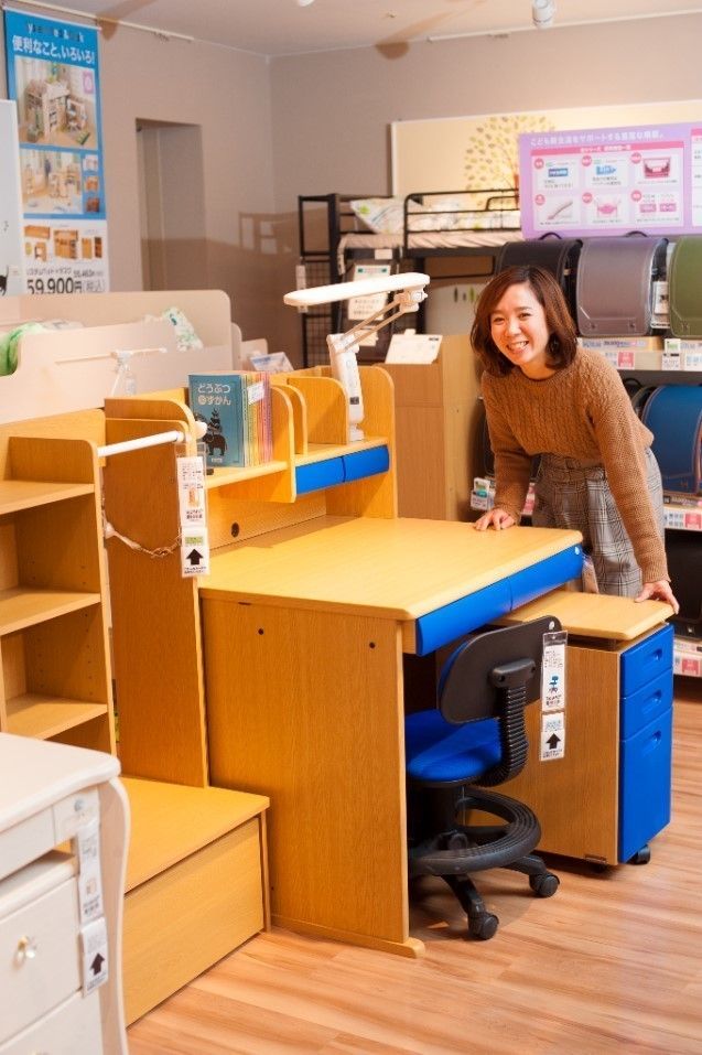 先輩ママたちに子ども用の学習机やベッドをそろえた場所を聞くと、「ニトリがおすすめ」と教えてくれました。その理由は、「子ども用家具が豊富」で「インテリアのテイストが幅広いから、部屋全体をトータルコーディネートできる」ところだそう。