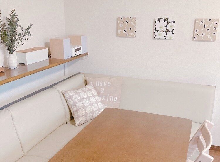 我が家ではモノを買う時には白かナチュラルのものをメインに選ぶようにしています。空間を広く見せる以外にも、部屋全体に統一感が出たり、モノ選びの際に色で迷うこともなくなり時短にもなります。