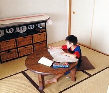低学年までは兄弟ともにちゃぶ台で勉強。高学年になると、長男はダイニングテーブルで宿題をしてました。