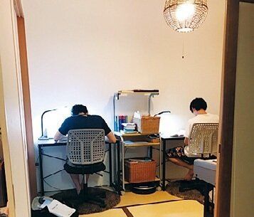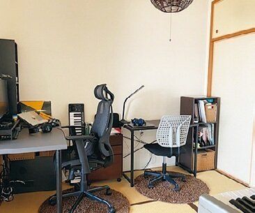 長男が動画編集を始めて大きな机に。この状況で二男が受験に失敗したので、その年の春から2人の部屋を分けました。