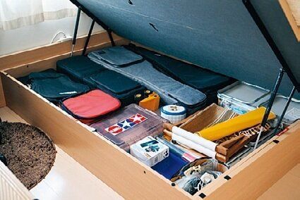 私以外の家族は洋服が好きだったり多趣味だったりして物が多め。ベッド下の収納にはシーズンオフの服や思い出の品でどこももりもり!