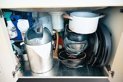 キッチンのシンク下の奥は年に数回しか使わない物たちをIN