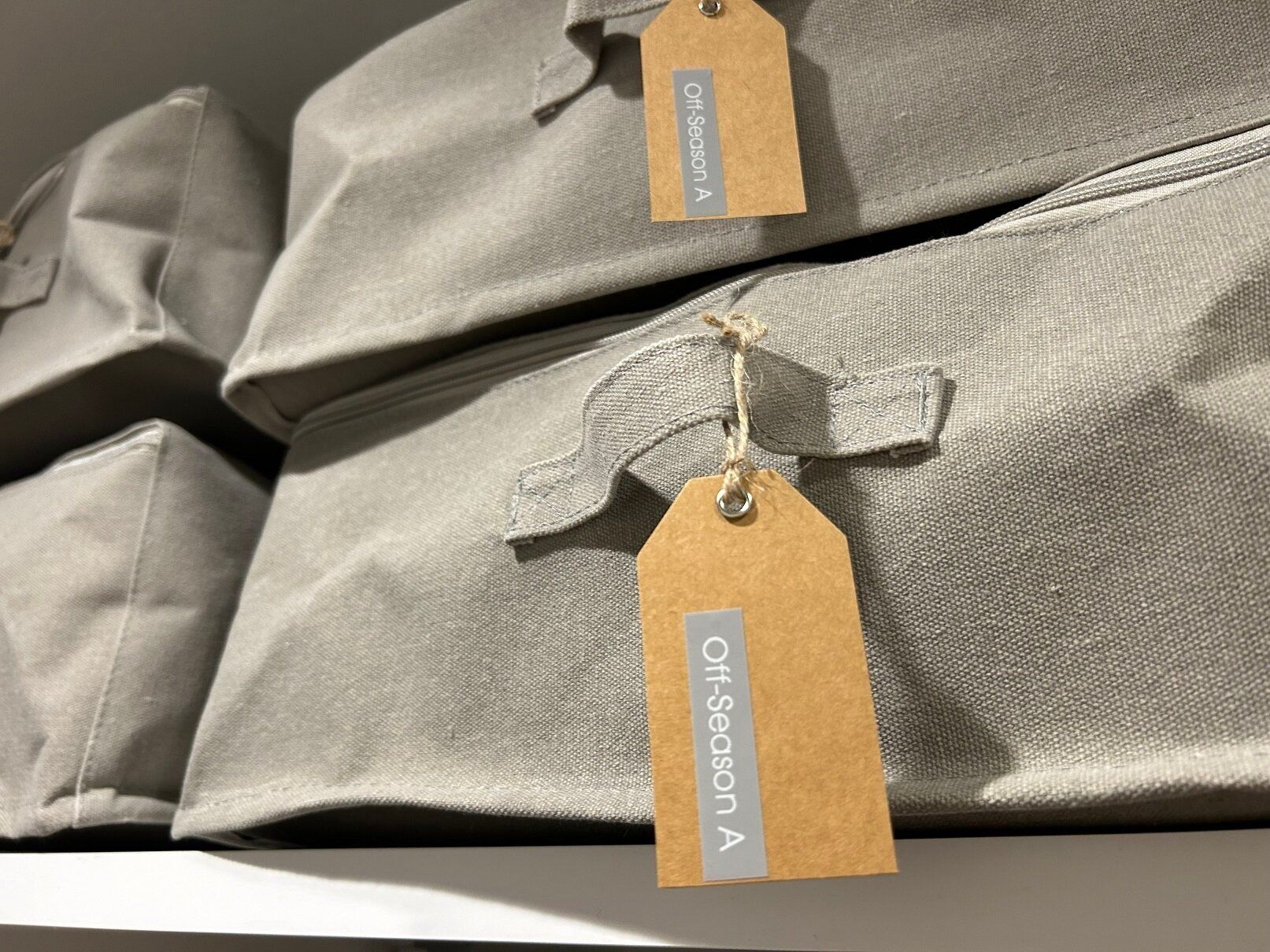 整理収納のプロ、小堀愛生さんによれば、オフシーズンの肌掛けや毛布、シーツなどを収納するためには「大きめサイズ」で上部棚などに上げ下げしやすい「取っ手付き」、そして「軽くて丈夫」のすべてを満たす必要があるそうです。