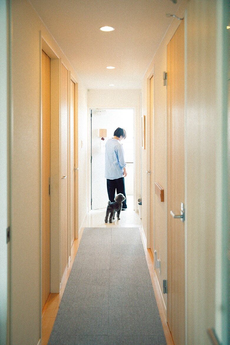 玄関に続く廊下は、避難通路として確保。「物が置きっ放しだと逃げるときにつまずいたり、動かすのに時間を取られることになるので、何も置かないのがベスト。バッグなどは壁掛けにして通路をふさがないように」。