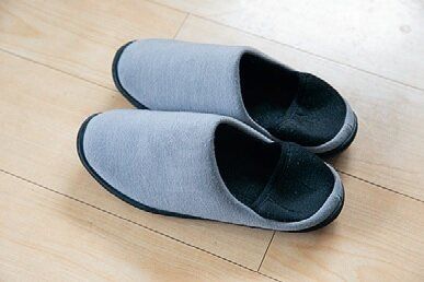 就寝中は咄嗟(とっさ)のときにすぐ動けません。ベッド周りには、高い家具や落ちやすい物は置かないように。「停電時でも使えるLEDライトを枕元に。万一割れ物などを踏んでも移動できるスリッパも置いています」。