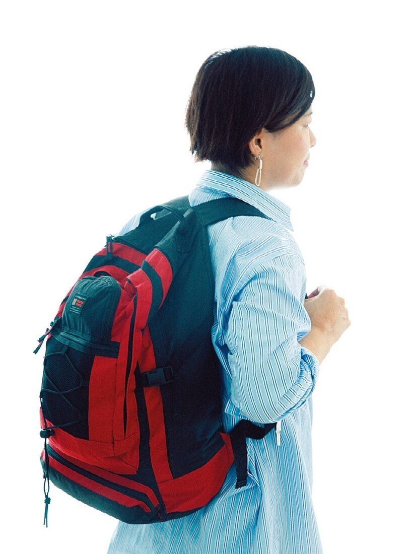 リュックは重心を上にすると、長時間背負っていても疲れにくくなります。軽い物を下に詰め、水などの重い物を上に。ただし、頻繁に使う物は上に入れてOK。