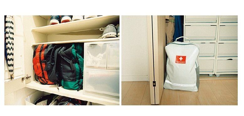 「防災リュックの重さの目安は、人によって異なるので、実際に背負ってみて走れるか確認するのがおすすめ。わが家は、3月、9月の年2回、リュックの中身を見直して、食品などを入れ替えています」。