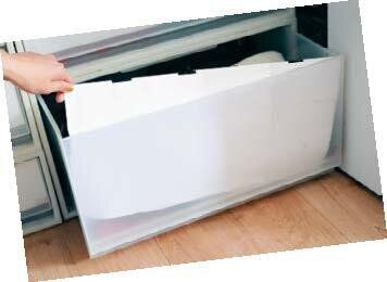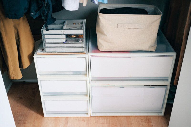 収納ケースは高さをそろえて。目隠しをすれば生活感OFF