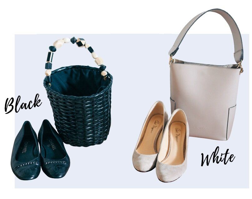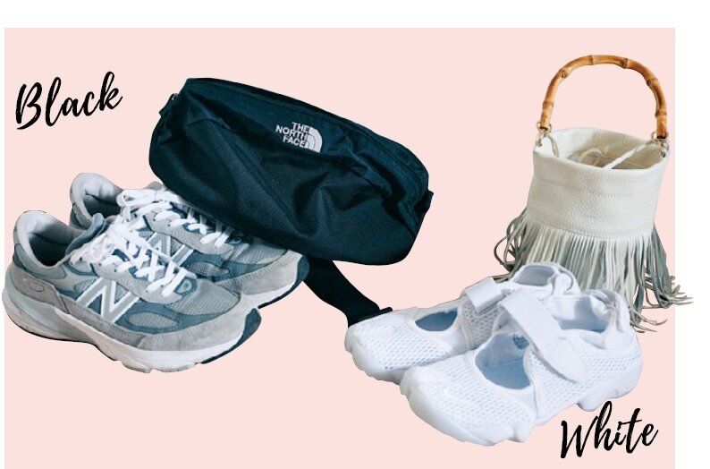コーディネートは服だけでなく、バッグや靴も含めて完成。あらかじめセットを決めておけば、どんな服を着ても迷わず選ぶことができます。きれいめとカジュアルでそれぞれ「黒系」「白系」をスタンバイしておくと最強!